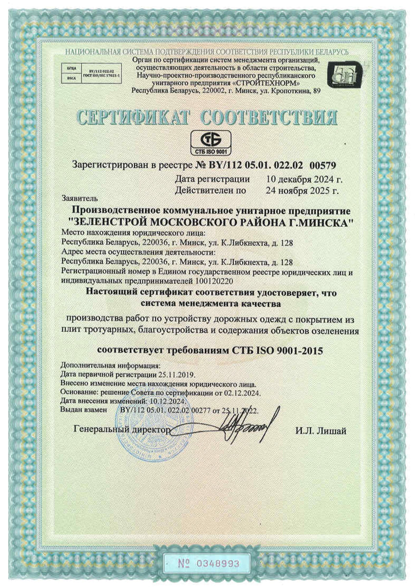 Производственное Коммунальное Унитарное Предприятие «ЗЕЛЕНСТРОЙ Московского района г.Минска»